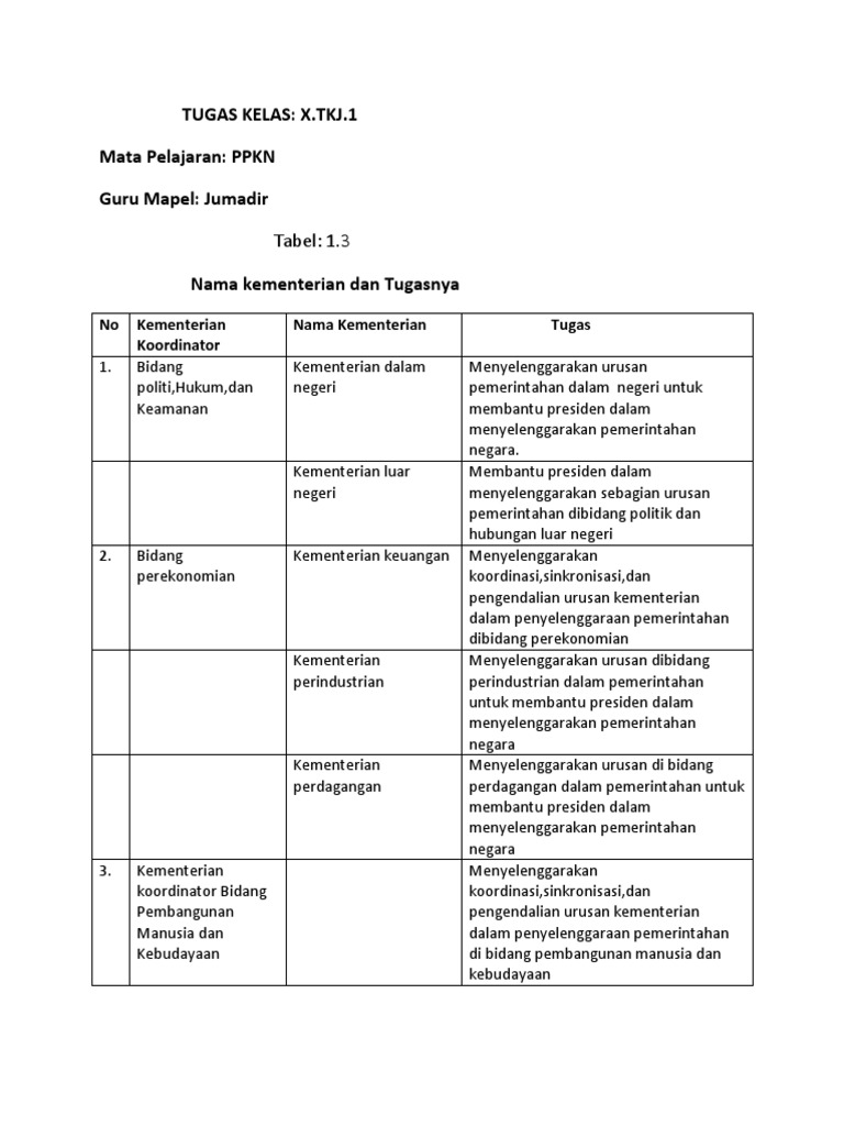 Kunci Jawaban Pkn Kelas 10 Halaman 18 Tugas Mandiri 1 3 Pembahasan Nama Kementerian Dan Tugasnya Portal Kudus Halaman 3