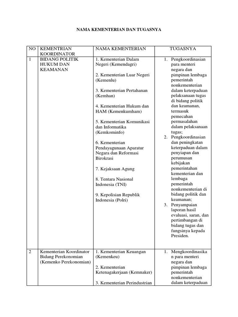 Nama Kementerian Dan Tugasnya Pdf